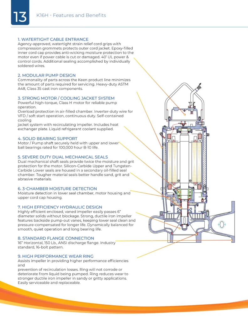 KEEN PUMP “KH” Series pumps are designed for demanding wastewater, municipal sewage treatment plants, storm water, industrial, commercial and a wide range of water-handling applications.