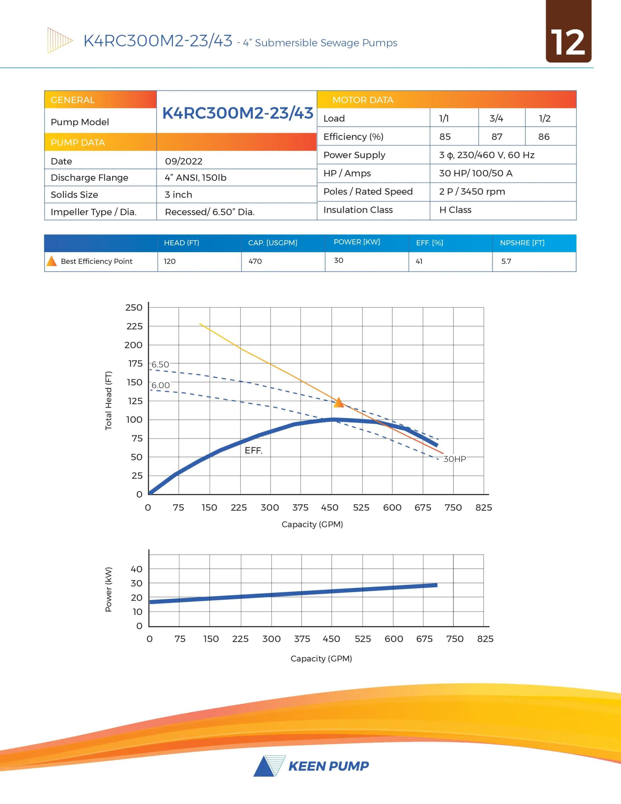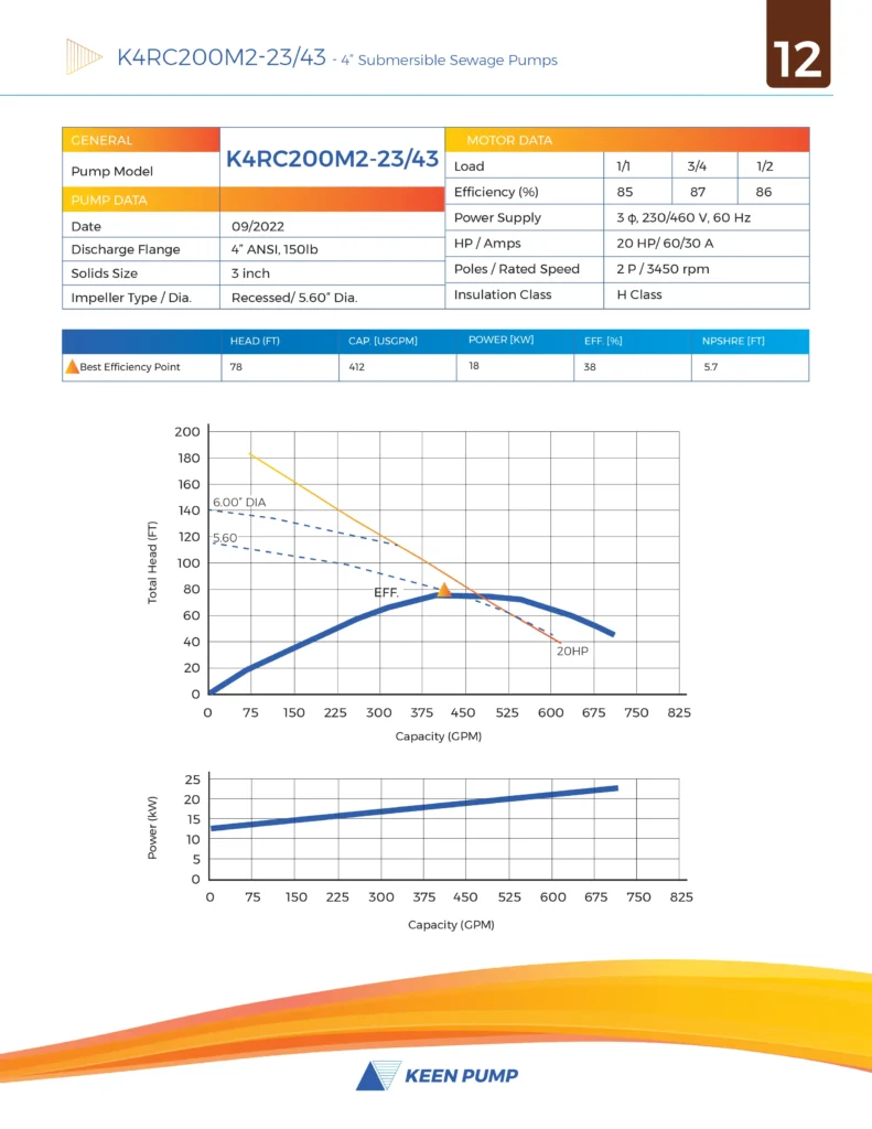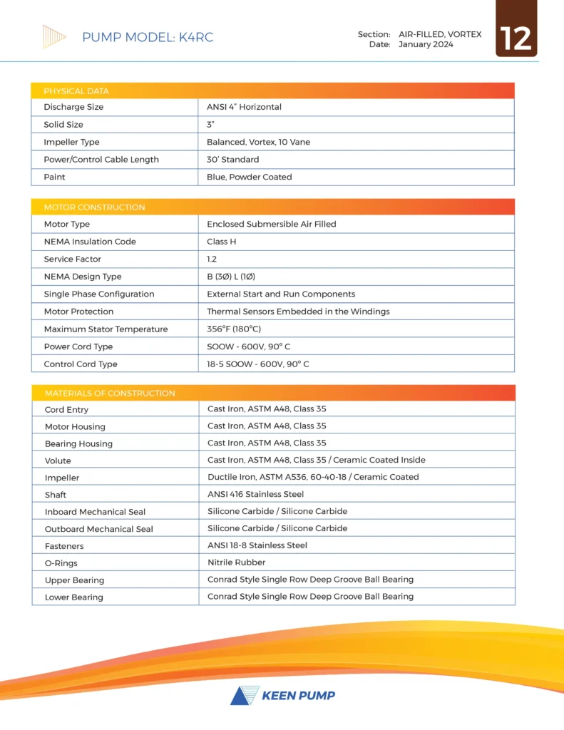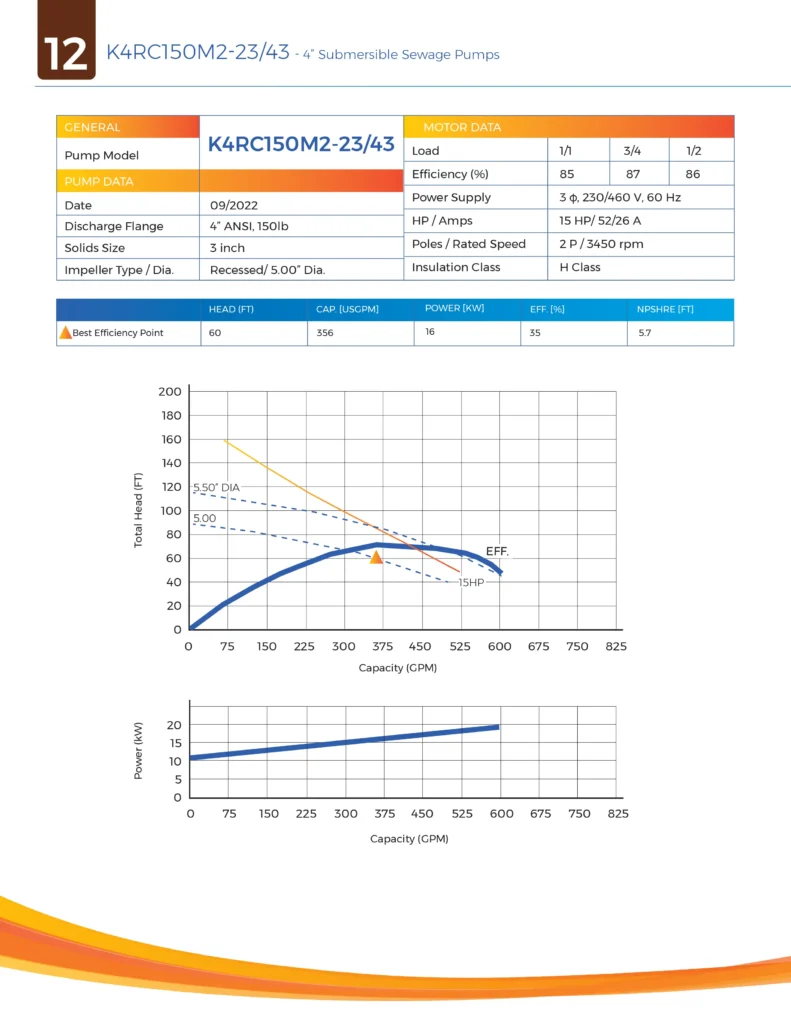 4” Recessed Impeller High Head Sewage Pump