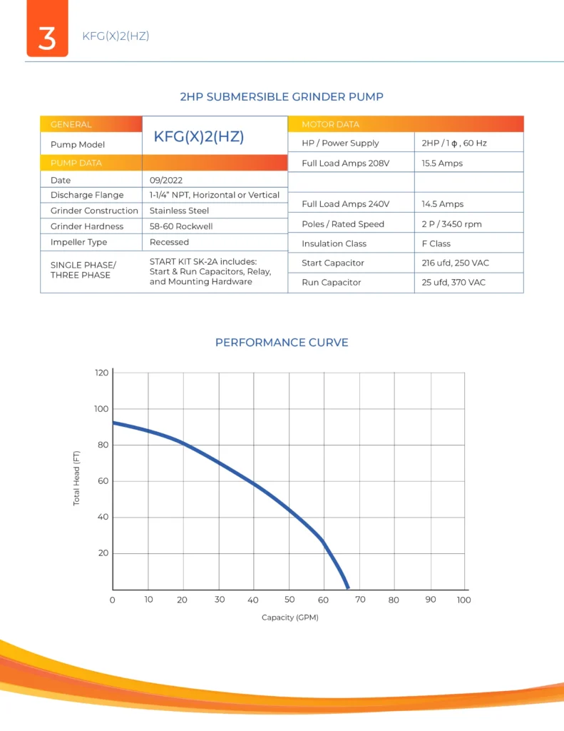 2HP DUAL SEAL GRINDER PUMP, 1 OR 3 PHASE