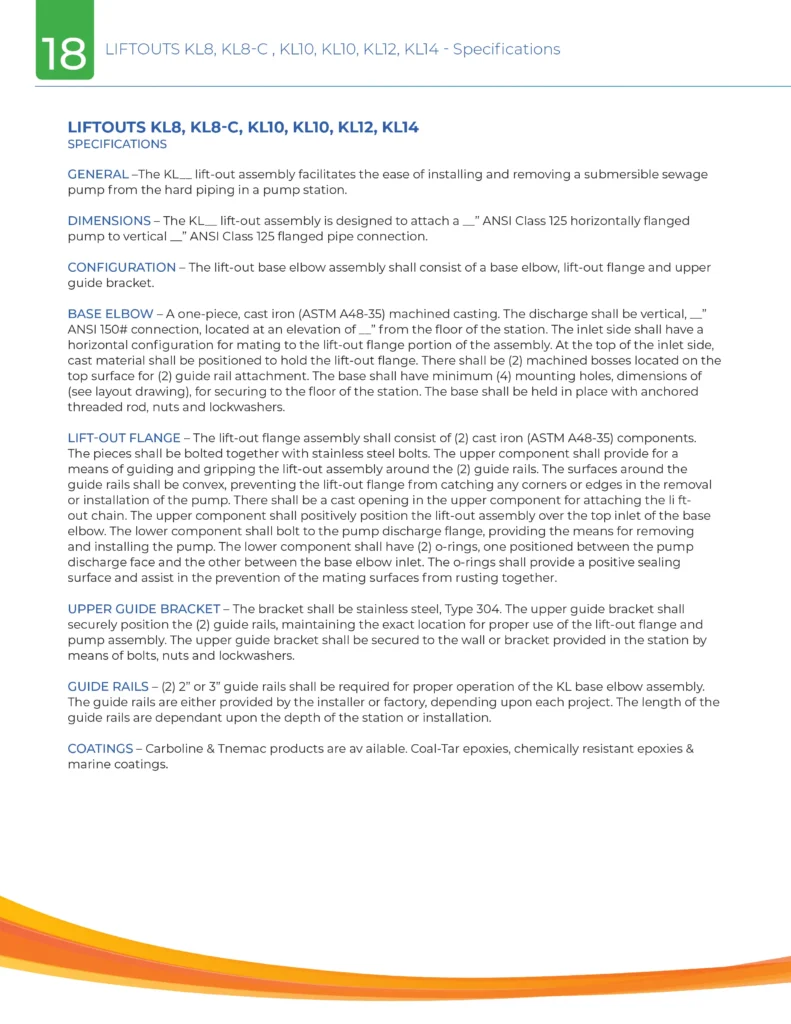 Base elbow provides quick and easy installation and removal of horizontal discharge Pumps up to 4000 lbs.